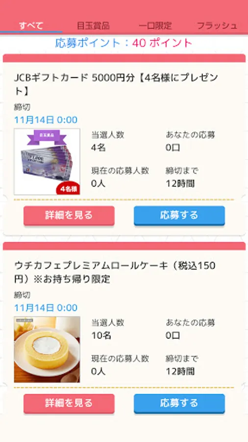The number of winners and the application deadline are set for each sweepstakes, and you can check them from the sweepstakes application screen.