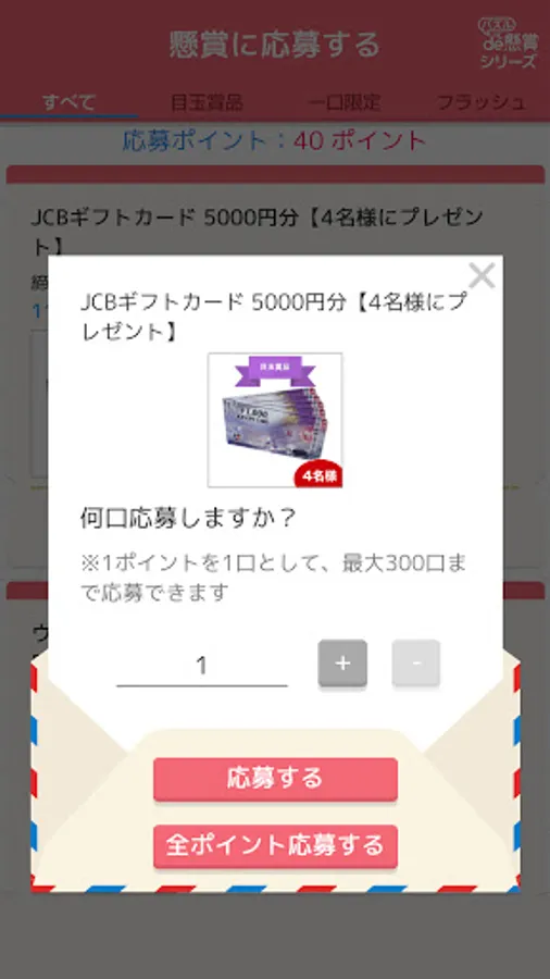 In addition, the maximum number of units that can be applied for one prize is 300. However, in the case of a one-bit limited sweepstakes, you can apply for up to one sweepstakes.