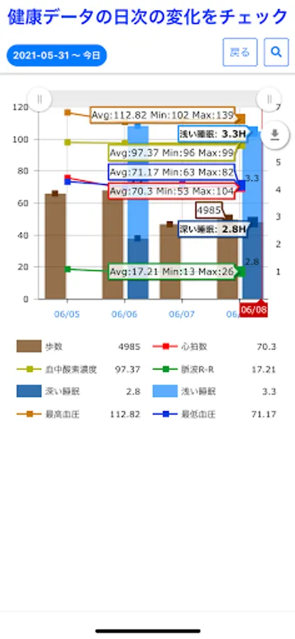 2. Manage health checkup results and other items for each item, and manage correlations with health data that changes with age