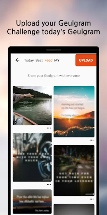 Geulgram is an optimized application that makes a variety of photo captions such as quote, emotional, love, greeting, and cheer.