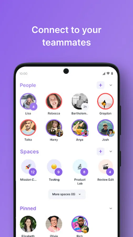 With our app you can easily see who’s around, who’s available to you, and who’s hosting a group call with whom. This in term lets team members communicate with each other on demand, using the right channel for each interaction; either by joining someone else’s call, creating another one entirely, or sharing a quick text or video-message to be replied at your teammate’s own pace or availability.