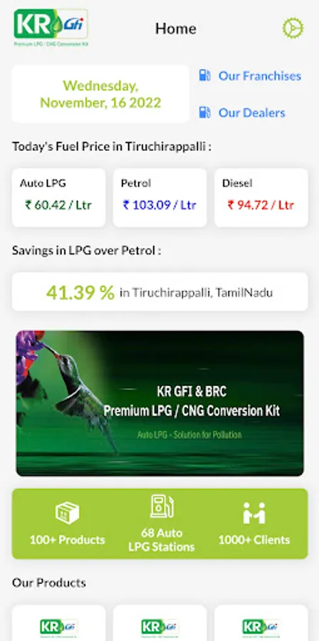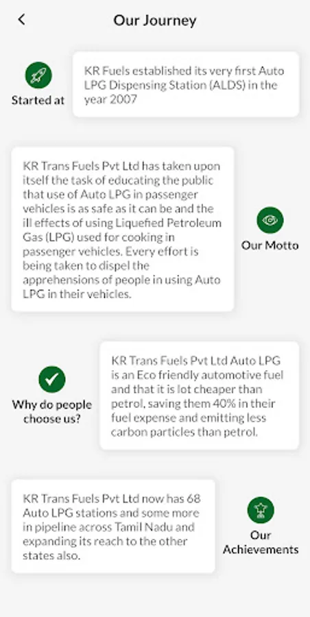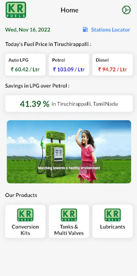 KR Fuels, a subsidiary of KRT Carriers, established its first Auto LPG Dispensing Station (ALDS) in the year 2007. KR Fuels is now KR Trans Fuels Pvt. Ltd. KR Trans Fuels Pvt. Ltd. has taken upon itself the task of educating the public that the use of Auto LPG in the passenger vehicles is as safe as it can be the adverse effects of using domestic LPG in passenger vehicles. As a part of this initiative, KR Trans Fuels Pvt. Ltd. has embarked on a drive to educate the public that auto LPG is an Eco friendly automotive fuel and comparatively cheaper than petrol.