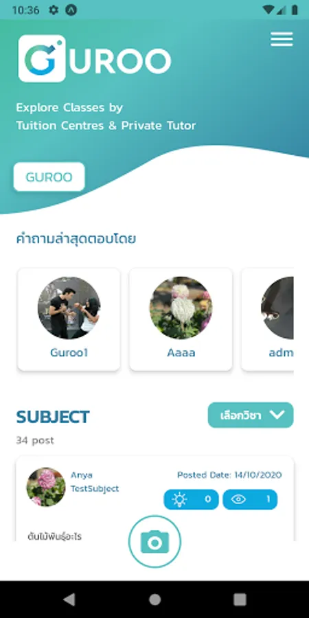 Can't do your homework / question? Post a picture of a question in Guroo and wait for the answers from the gurus in this online learning community. Let's help each other answer and share knowledge! Don't be afraid to ask. We have an anonymous inquiry system for children who do not want to reveal their identity. Including many more features