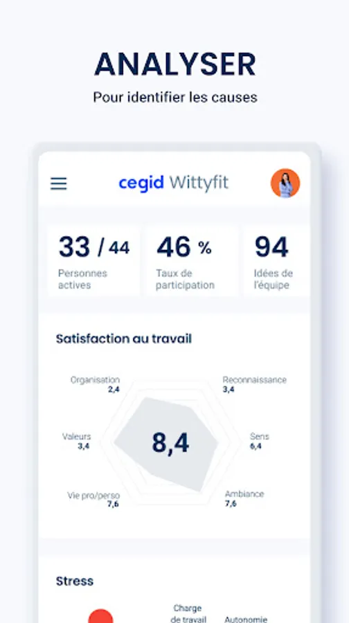 Cegid Wittyfit is an application for continuous monitoring of the quality of life at work and prevention of employee health. Developed in partnership with university researchers who are experts in occupational health and prevention.