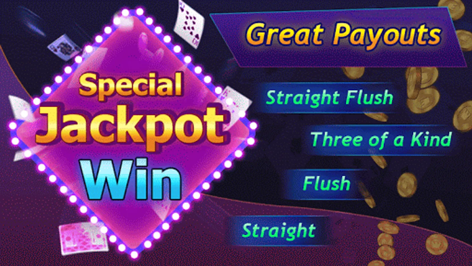 Jackpot Wins – E.g.: You are dealt a 10 ♣ and a Q ♥ and you draw the 3rd card which is a J ♠ - You win a jackpot as you have a Sequence. If you are dealt a 5 ♣ and a Q ♣ and then the 3rd card is a 10 ♣ - You win a jackpot as you have a Flush.