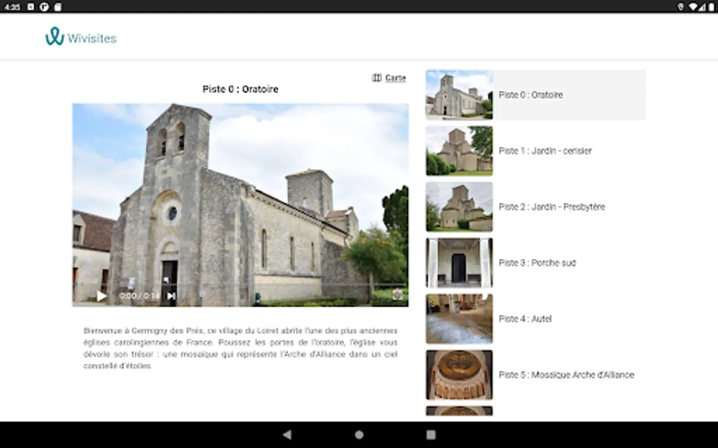 Wivisites is an application that facilitates the discovery of cultural heritage, major sites and little-known nuggets. Everywhere in France, visitors geolocate themselves, identify the sites around them and benefit from audio guides and routes to accompany them during their visits.