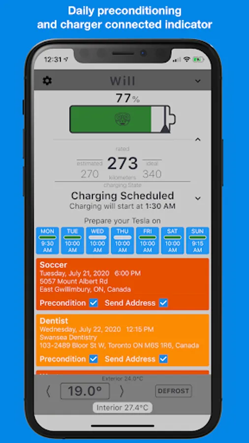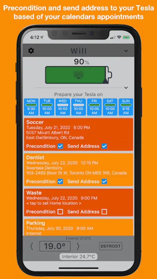 Carlazo is your personal car valet. Carlazo reads appointments from your device's calendar and offers to precondition your car and send address to its navigation system. Using google maps and the appointment date and time, Carlazo will calculate when you should leave based on where your vehicle is currently parked and the appointment location. The app will then send that address to the navigation system and turn on air conditioning.