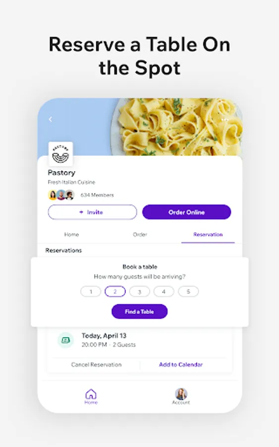 Welcome to Dine by Wix, the app where you can place orders, make reservations and get in contact with your favorite restaurants. With just a few taps of your finger, get everything you need to enjoy a delicious meal whenever and wherever you want it.