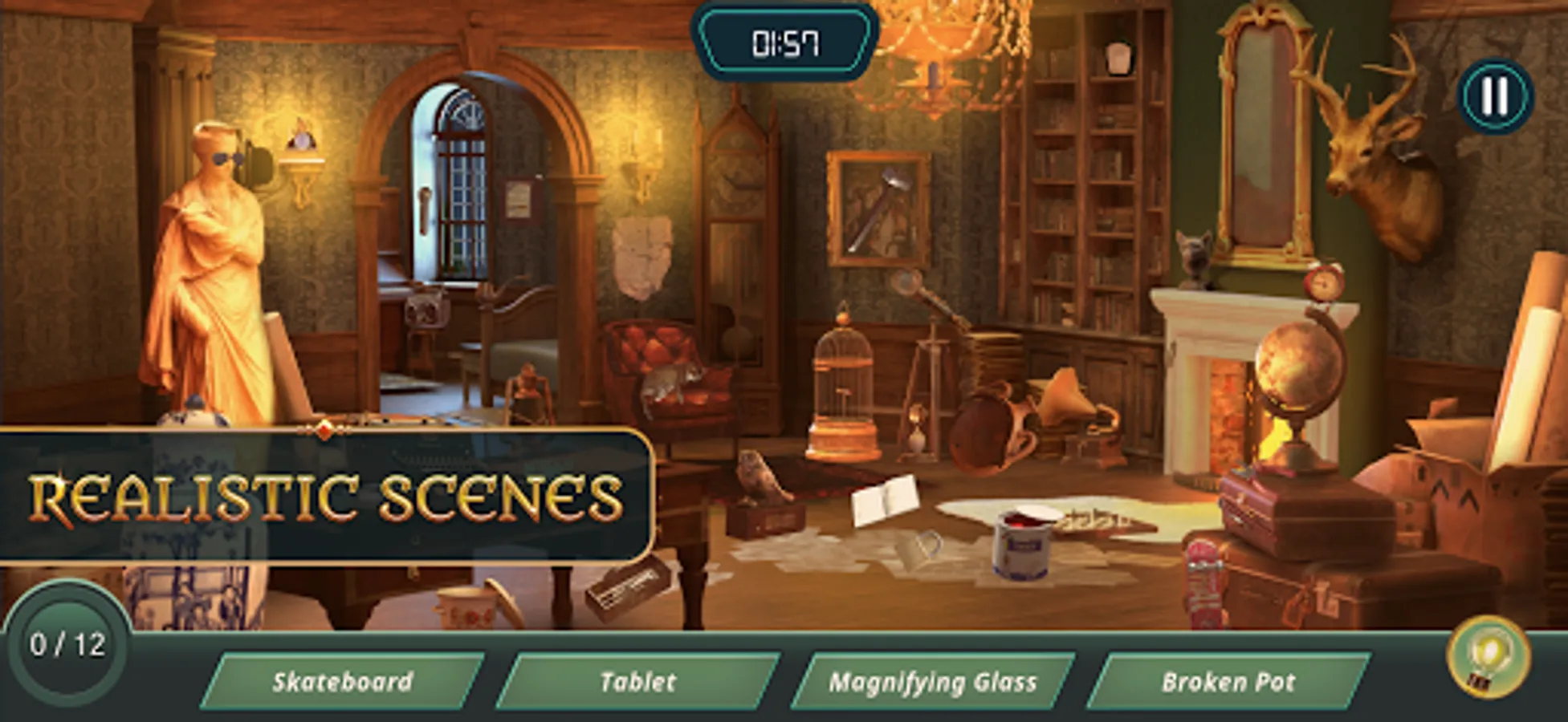 Ready to investigate crime scenes? Hunt hidden objects, crack mysteries and solve cases amongst a variety of realistic hidden object rooms.