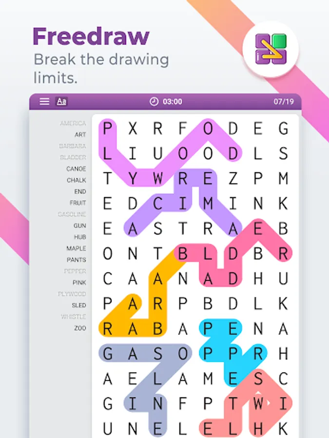 Word Search Colorful is totally FREE and is packed full of many word puzzles.