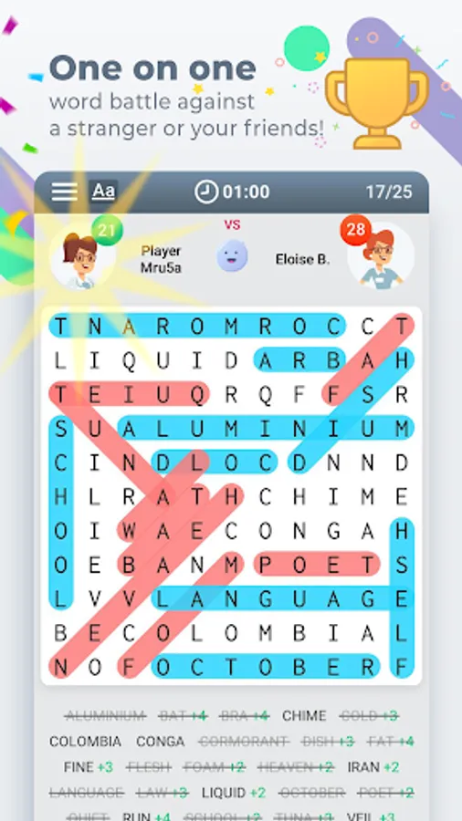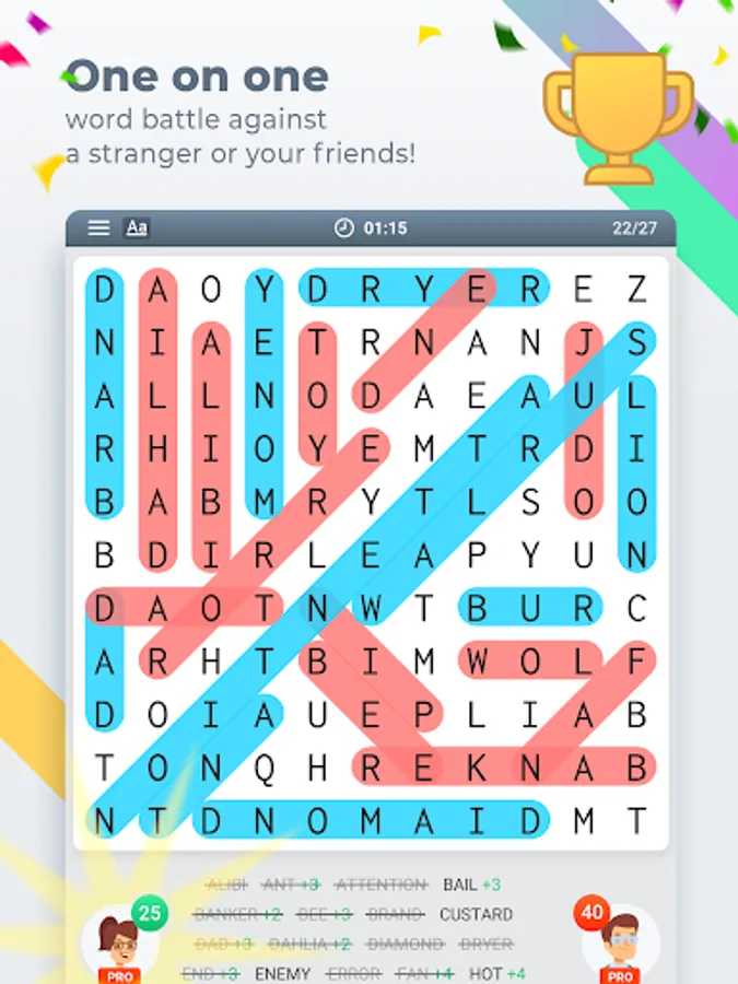 - Multiplayer: One to one word battle against a stranger or your friends!