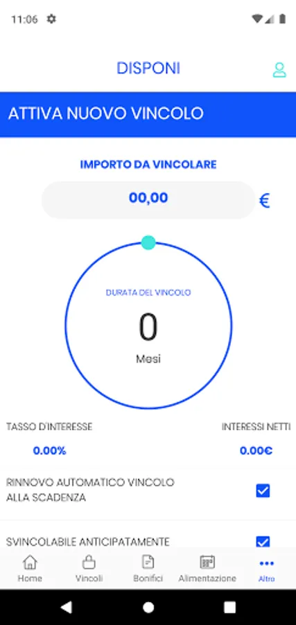 The Contoforte deposit account is free and does not include opening, management and closing costs. It is possible to block the sums deposited by activating bonds with durations from 3 months to 5 years and with increasing interest rates. If you want to activate a lien with a duration of more than 6 months, you can choose the early release option which you can exercise with 31 days notice.
