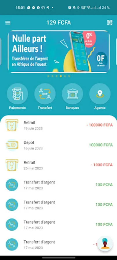 Sign up for free in a few moments, deposit money in our network of agents or at home by credit card, then carry out all your operations for free: