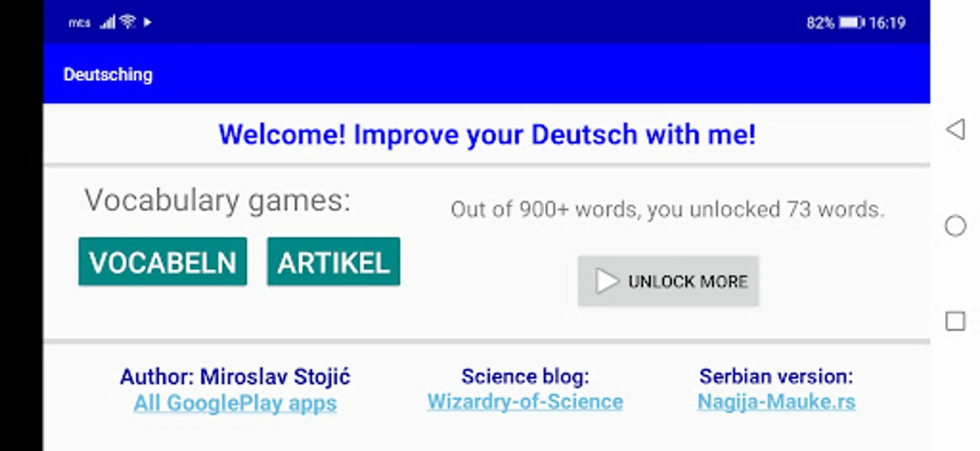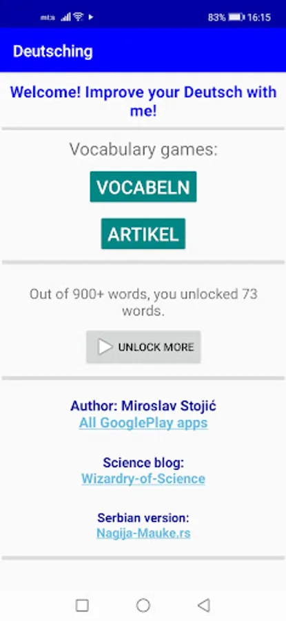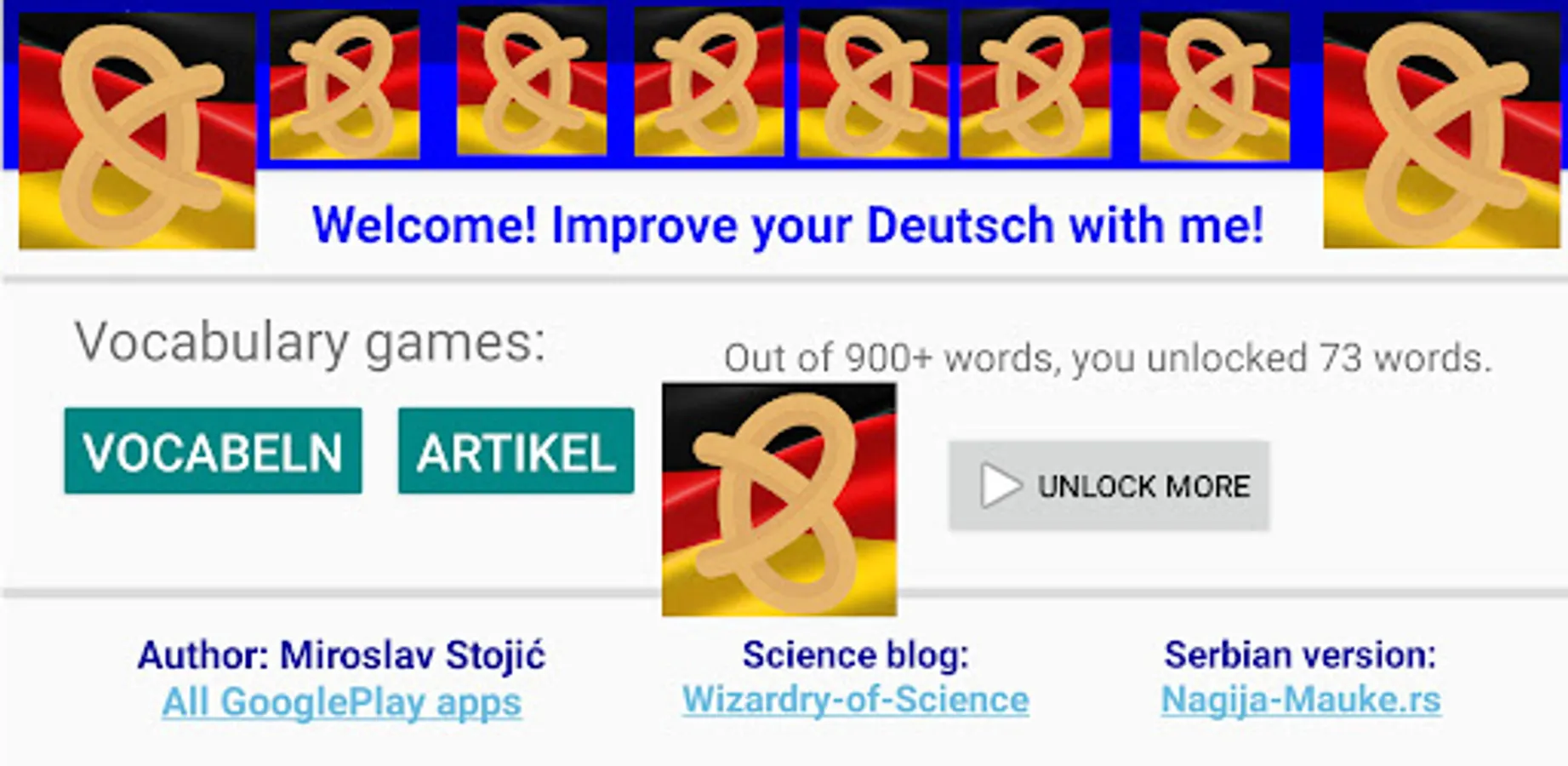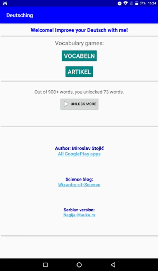 "Deutsching" is an app where you learn and practice German.