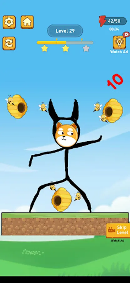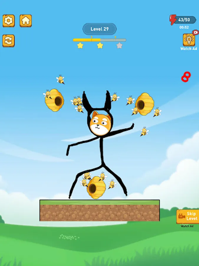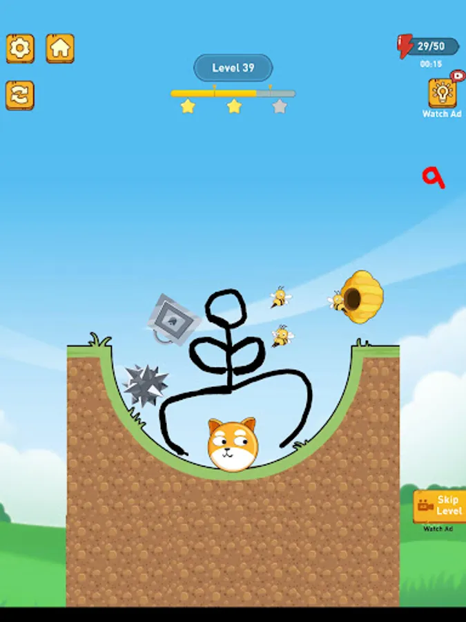 Draw Rescue: Save The Dog Bee is funny puzzle game.You need save the dog by drawing the line to protect the dog from the attack of the bees, hold on and you will win the game.Use your brain to save the doge.