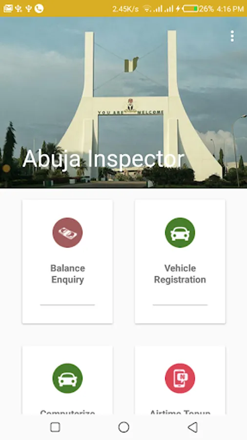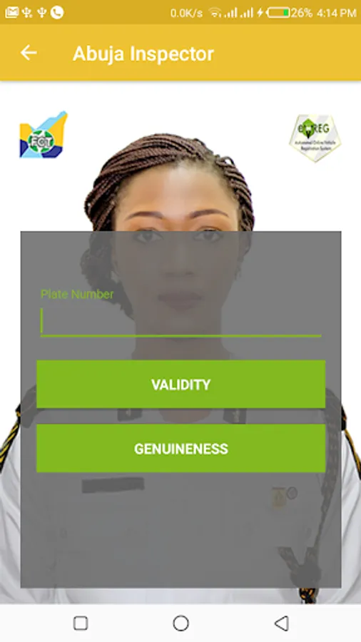 Abuja Inspector is an electronic Vehicle Registration App used For Vehicle details verification and validation. It handles various ranges of Payment for DRTS operations and Services in the FCT. It allows you to check vehicle details verification, car registration check and vehicle registration STATUS check online.