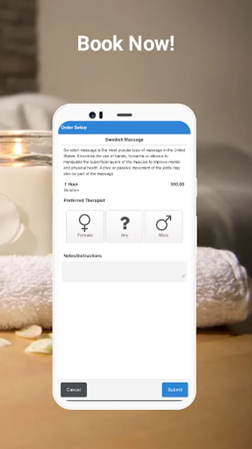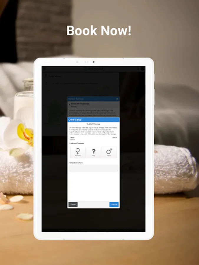 See available therapists near you and track your therapist arrival and receive notifications when they arrive. Pay using your credit and debit cards. Get the exact amount of time of massage through our system.