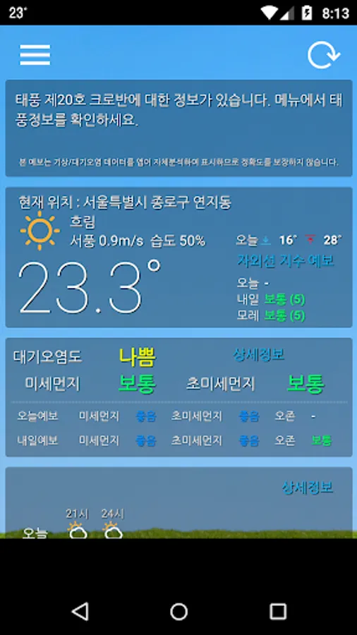 - Fine dust and ultra-fine dust forecast displayed (Tomorrow forecast will be displayed after 5 pm)