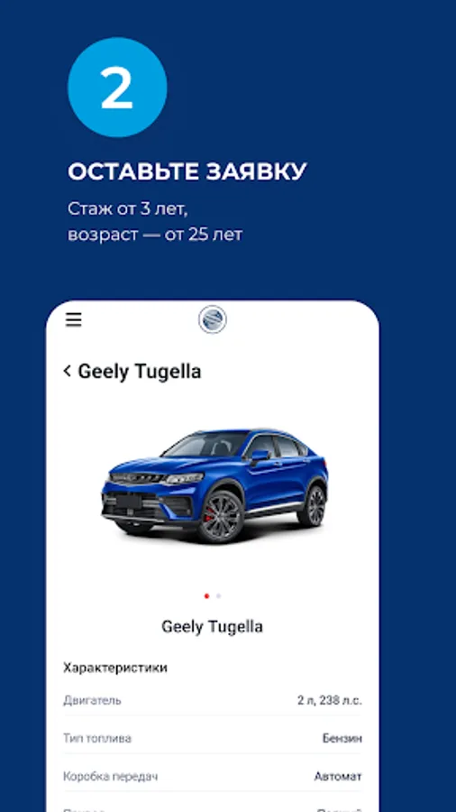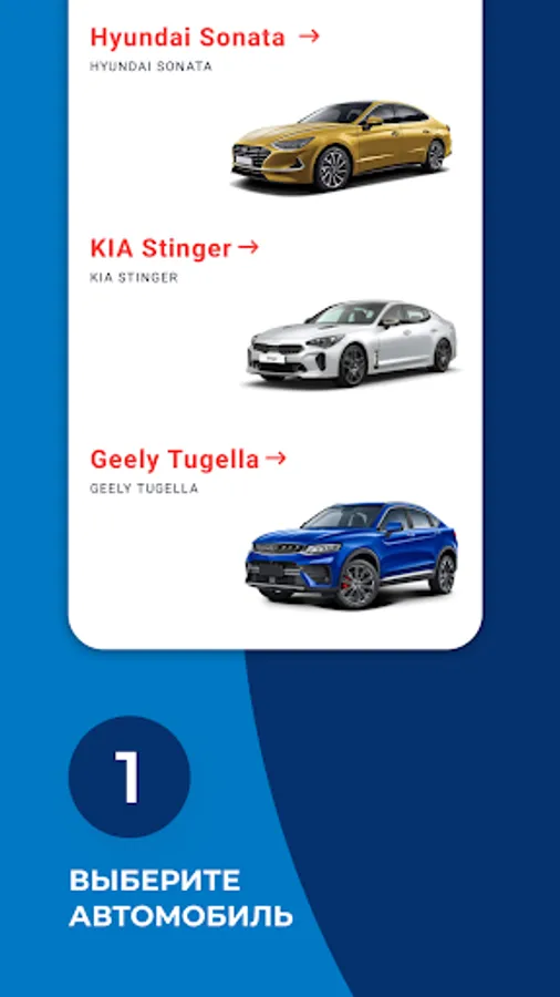 Select the make and model you are interested in on the site, pass the scoring in the mobile application, get a new car and enjoy it for a year. No hassle.