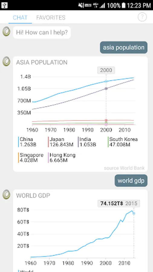 • Display economic data e.g. "nordic gdp", "asia population", "europe unemployment", "asia cpi", "china japan gdp per capita"