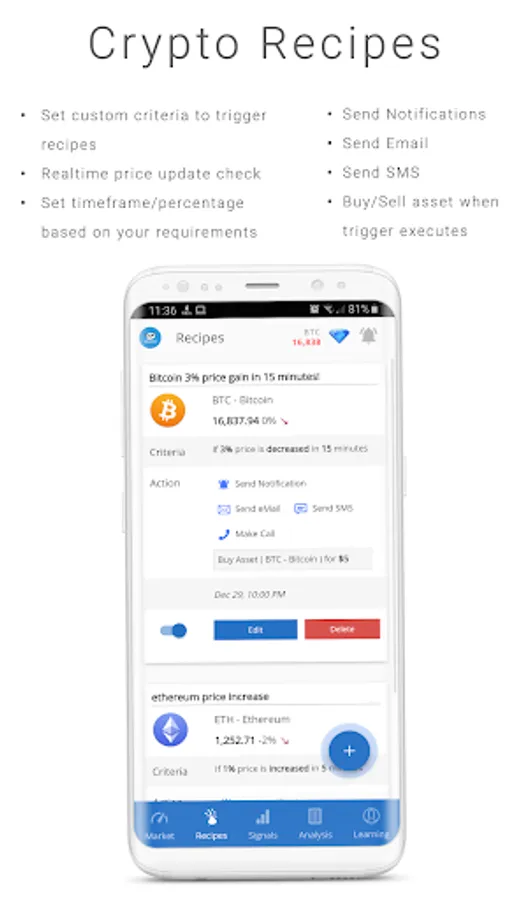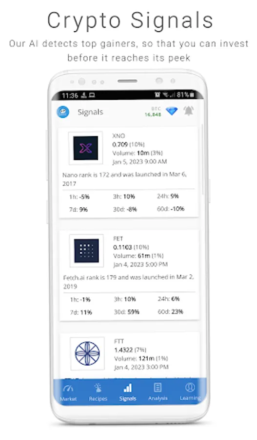 Panda Signals helps investors build profitable portfolios using super-intelligent panda in which you can create recipes, read the latest news, get coin analysis, view market health, and monitors trading patterns and ranking.