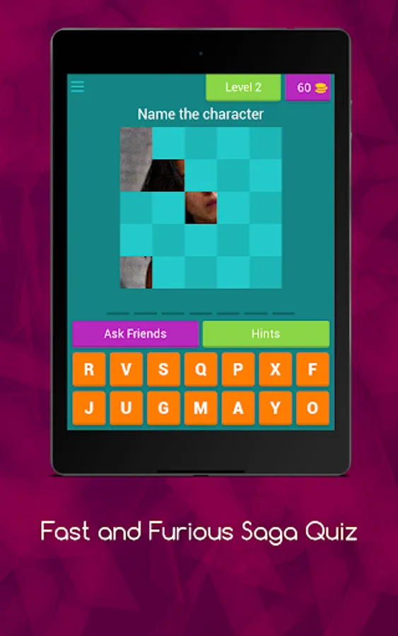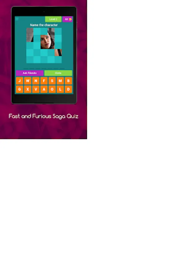 Do you like fast and furious movie? This is a quiz game for you to test your knowledge about the fast and furious saga. It's fanmade quiz game for real fans of fast and furious movies. Prove yourself you know all the characters of the fast and furious movie. Don't hesitate and download now! More levels comming soon.