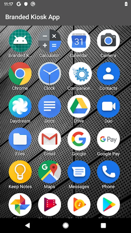 Application launcher to be launched in kiosk mode on professional devices. Via the "managed configurations" it is possible to choose the number of columns as well as the list of authorized applications.