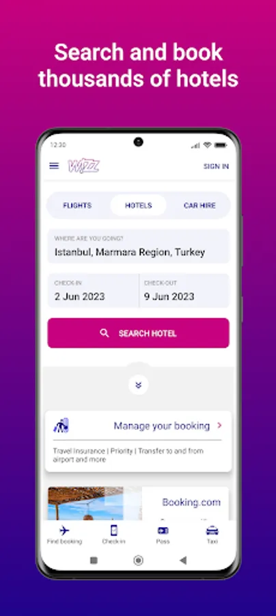 HOTELS - reserve your hotel with Booking.com and get 5% of your booking value back as WIZZ credit