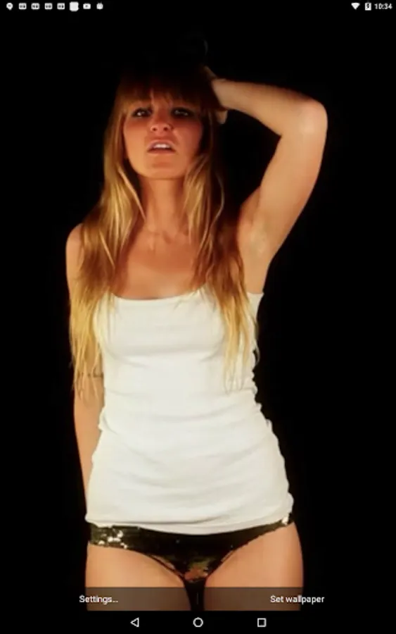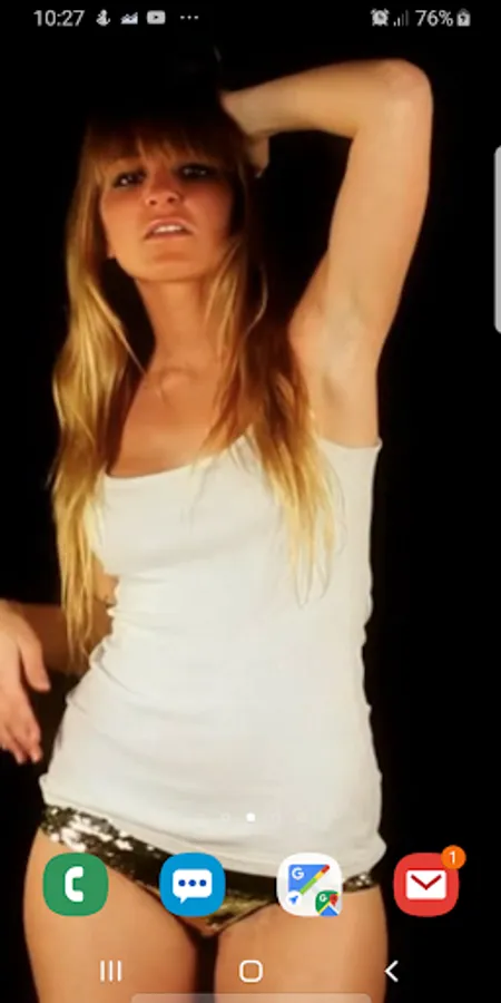 Dancing Girl live wallpaper features a beautiful girl dancing and teasing on your phone or tablet. Double tap the live wallpaper to start or stop the music.