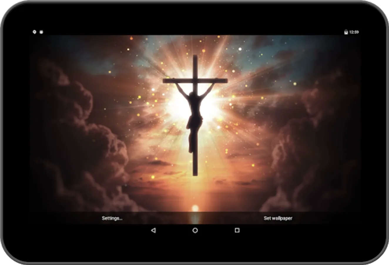 This spiritual live wallpaper features our lord and saviour Jesus Christ on the cross.