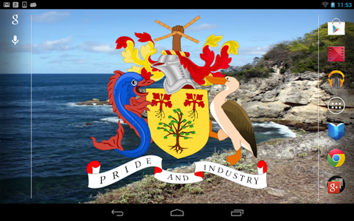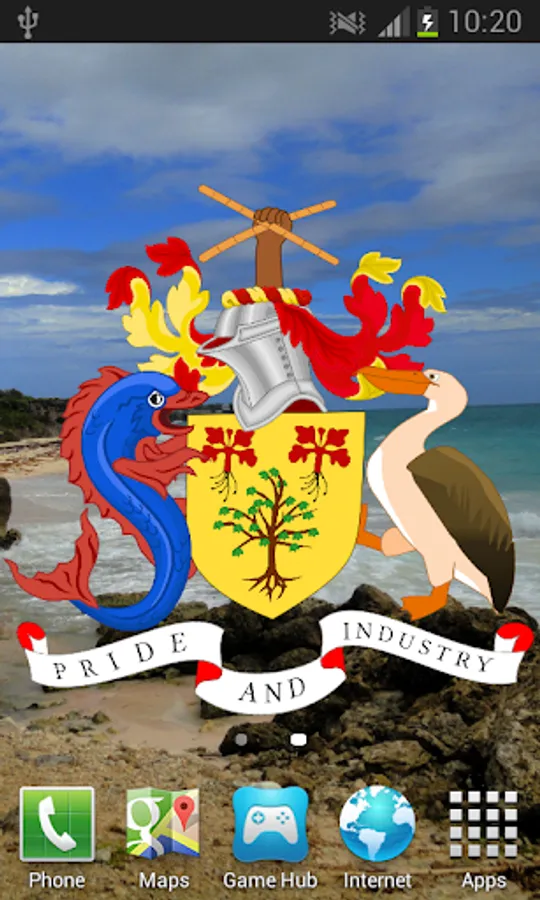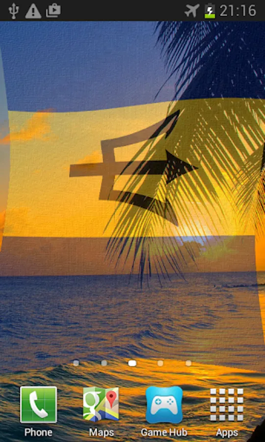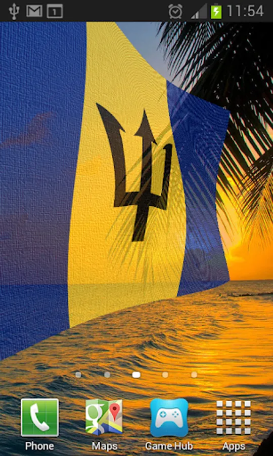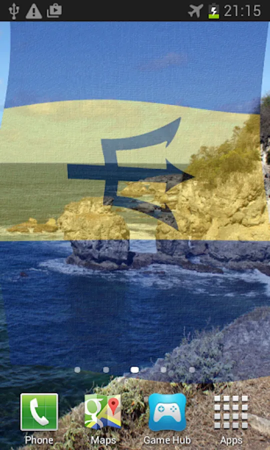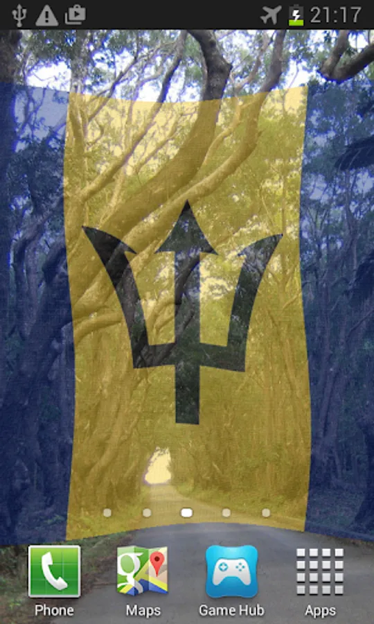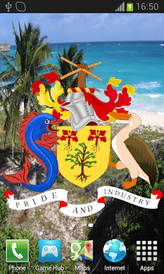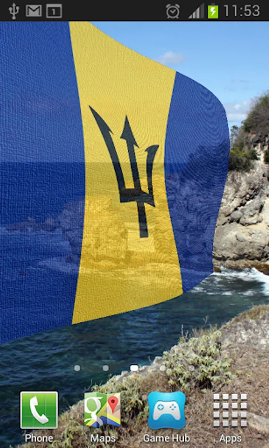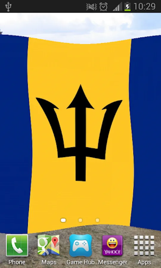 Barbados Flag Live Wallpaper features the Bajan flag or coat of arms blowing in the wind.