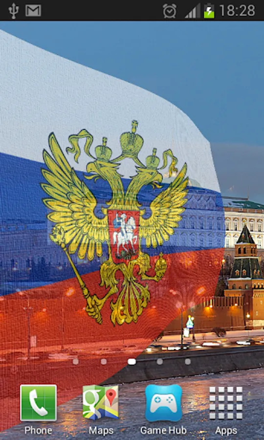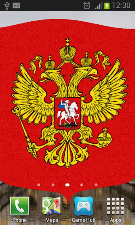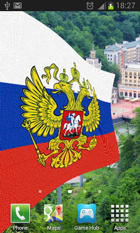 Russia Flag Live Wallpaper features images from the beautiful country of Russia overlaid with the Russian flag or Coat of Arms.