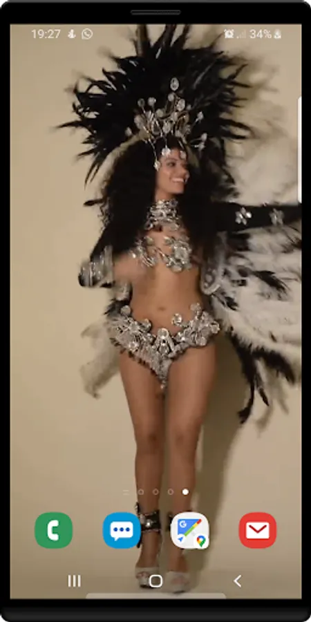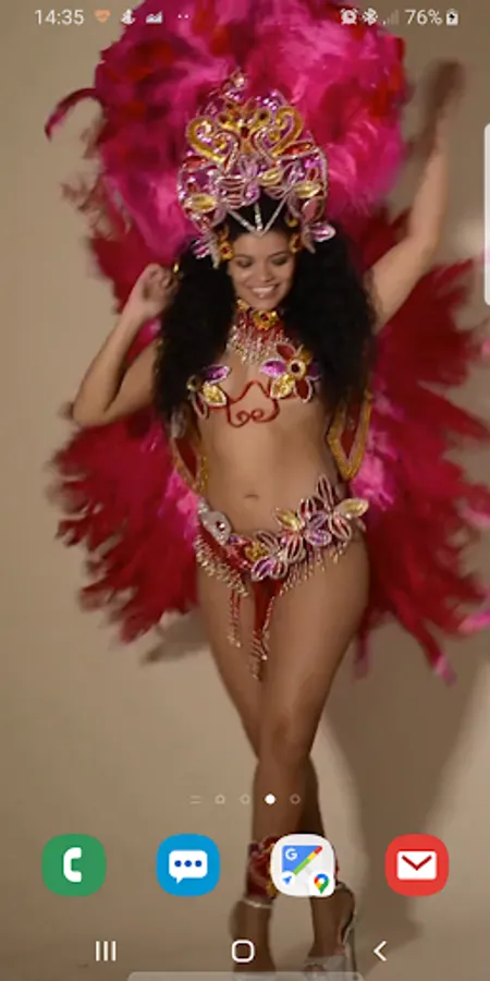 Samba girl live wallpaper features a beautiful lady doing the samba dance.