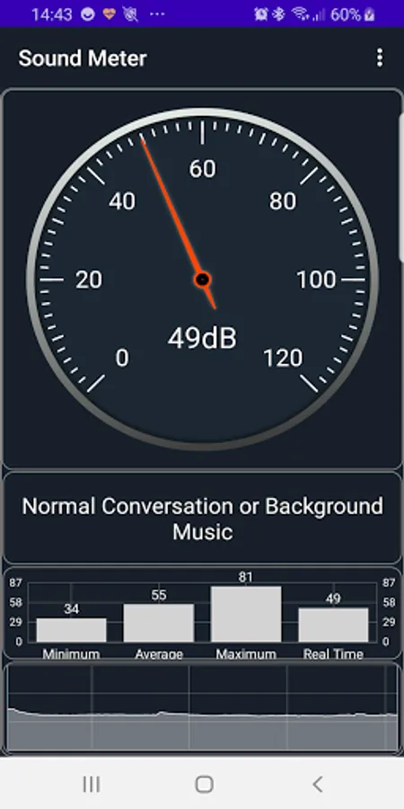 Sound Meter uses the microphone in your device to measure changes in air pressure produced by sound sources. Measurements are presented in decibels (abbreviated as dB).