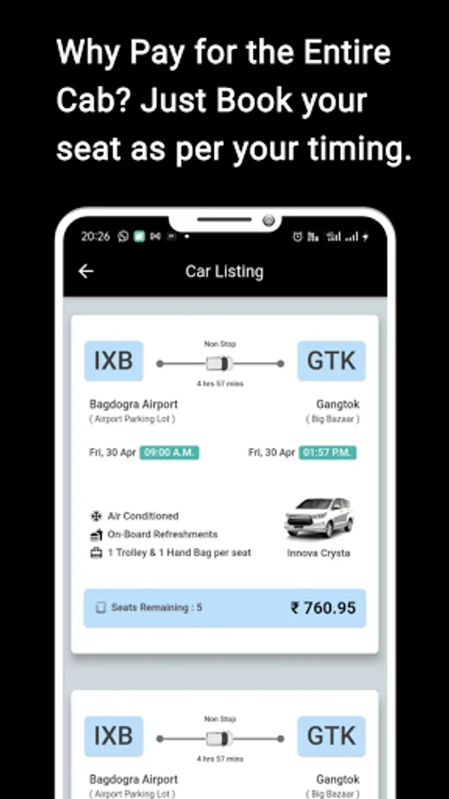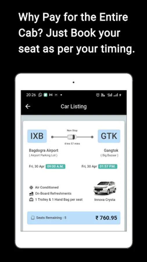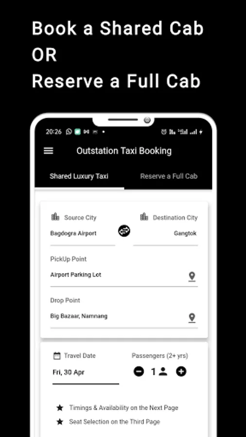 2. Reserved Taxi Booking - Get a door pick/ drop service for your next outstation trip. Rated the best inter city taxi service in the region, this segment has over 1 lakh travellers who have availed this service. Highly recommended for travellers who want the entire cab for themselves, this service provides the most experienced and highly professional drivers with a focus on delivering top notch service.
