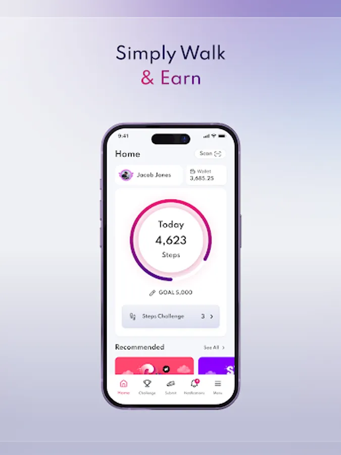 Customize your daily steps goal based on how active you are! Each time you hit a goal, you earn rewards.