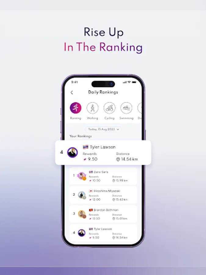 Challenge yourself to compete in exercise against friends and users worldwide, and rise up in the world's leaderboard.