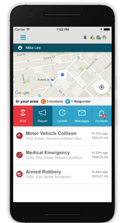 - Receive notifications of safety or security problems near your location from your community.