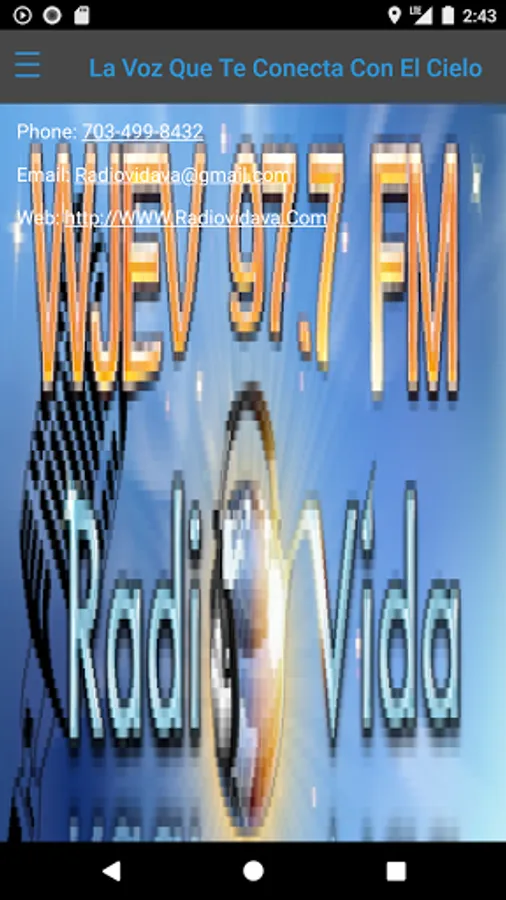 Radio Vida 97.7 Fm , we are preaching the gospel of Jesus Christ and we hope that you can be bless through our app. Our goal is to help any one that is in need, going through hard times, depression our any sickness in their lives. We want to tell you that there is hope and new things can come at any time. Please enjoy our app that is free from any judment or any bad words or comments.