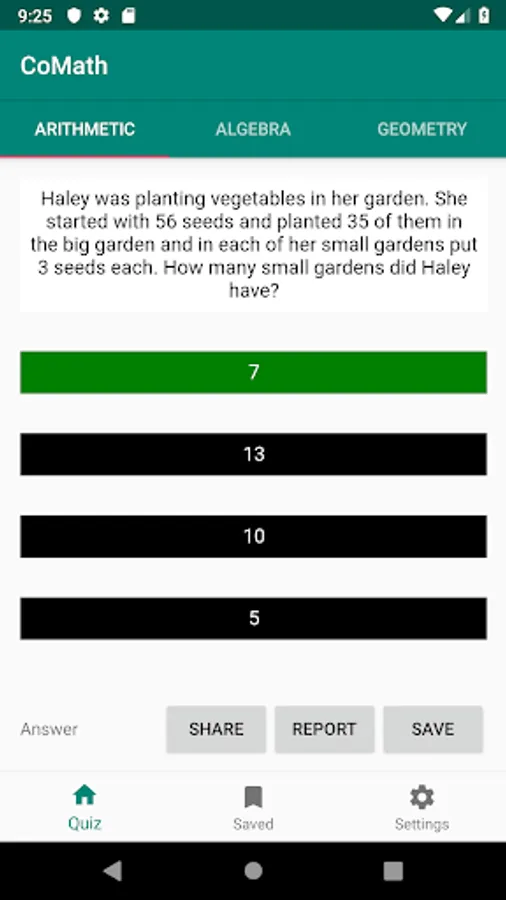 Each quiz could be shared to your friends to discuss later, or be saved for later review.
