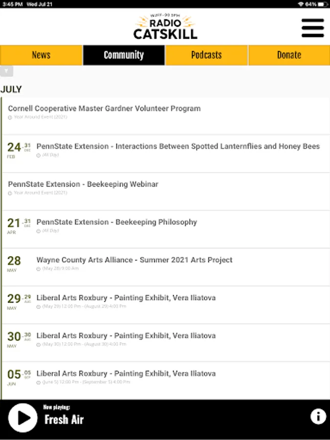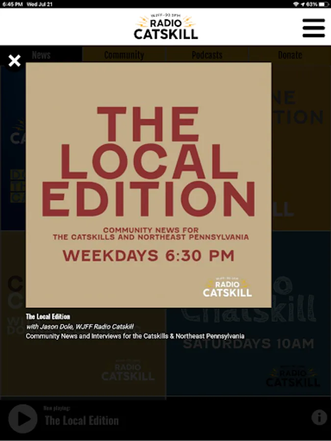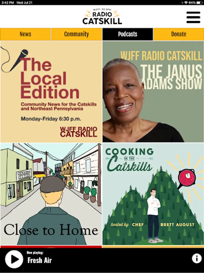 WJFF Radio Catskill 90.5 FM is a non-commercial educational radio broadcaster whose mission is to make available to its community a broad range of ideas and ideals useful to a full and enlightened life. The station also aims to involve the community in preserving and transmitting the community’s cultural heritage and artistic expressions in addition to those of the global community and to promote understanding among people of diverse social and cultural backgrounds. WJFF exists to connect, reflect and involve diverse communities through enlightening, informative and entertaining content. Our programming includes well known nationally and internationally syndicated news, public affairs and cultural programs from NPR, Pacifica, American Public Radio, PRX and more. WJFF also presents a variety of locally produced cultural and public affairs programs that speak directly to our audience of the region's year-round residents as well as those who maintain a seasonal presence in the area.
