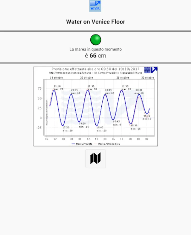 WVF is developed in accordance with the "Istituzione Centro Previsioni e Segnalazioni Maree del comune Venezia" from which we have the real time value of the tide.