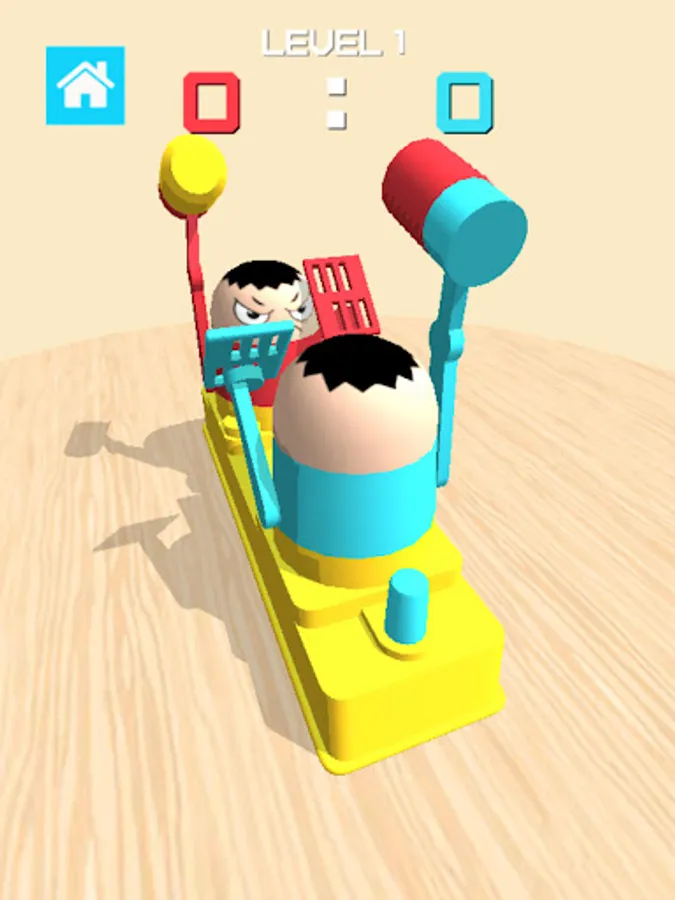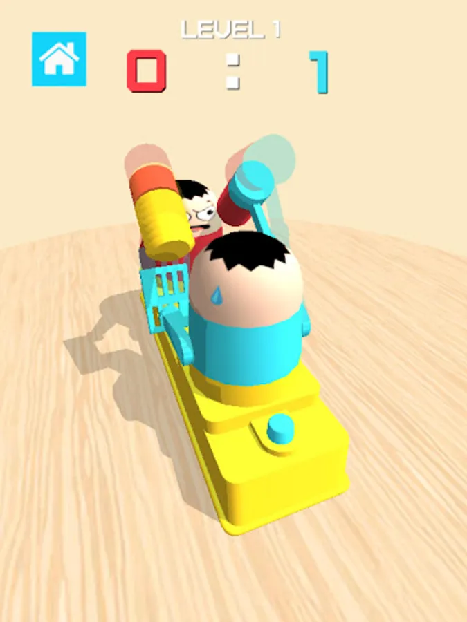 It is a interactive game toy among tow people. Press the button to hit the doll of the other player by hammer. Who hit the other doll's head is the winner.