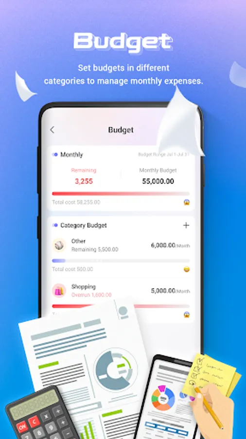 With this budget planner app, you can add a budget to control your spending and alert you once you reach the threshold.You can set budgets in different categories to better manage your monthly expenses.
