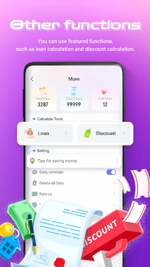 You can use our featured functions,such as loan calculation and discount calculation.Only enter your loan amount, loan term, and loan interest rate and the result could be shown clearly.聽