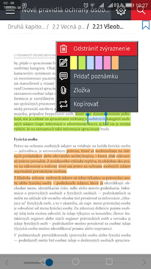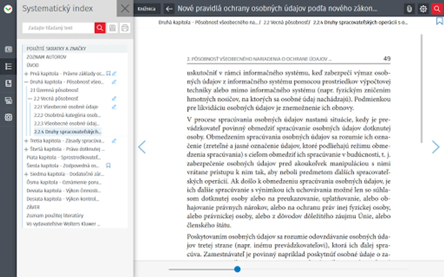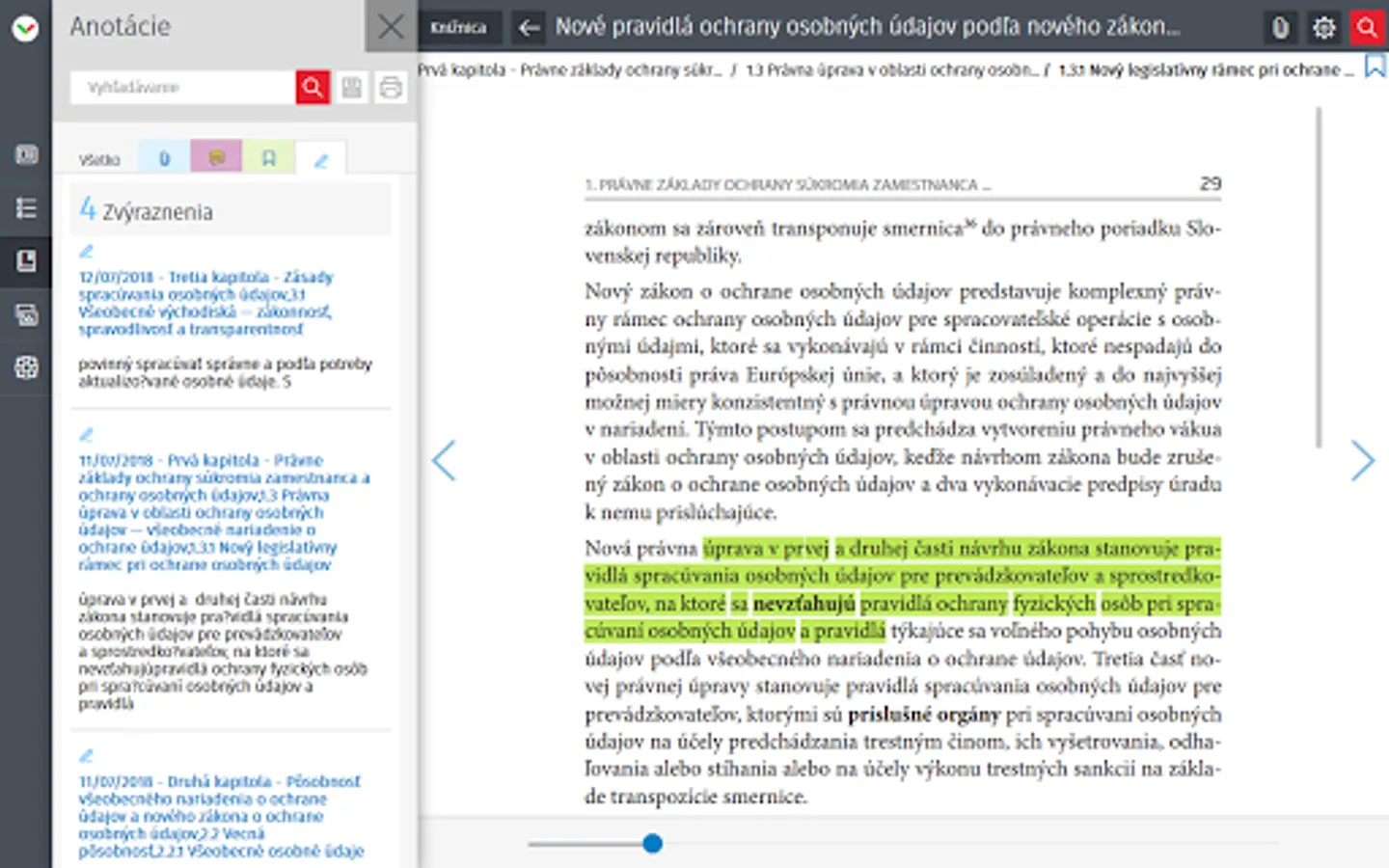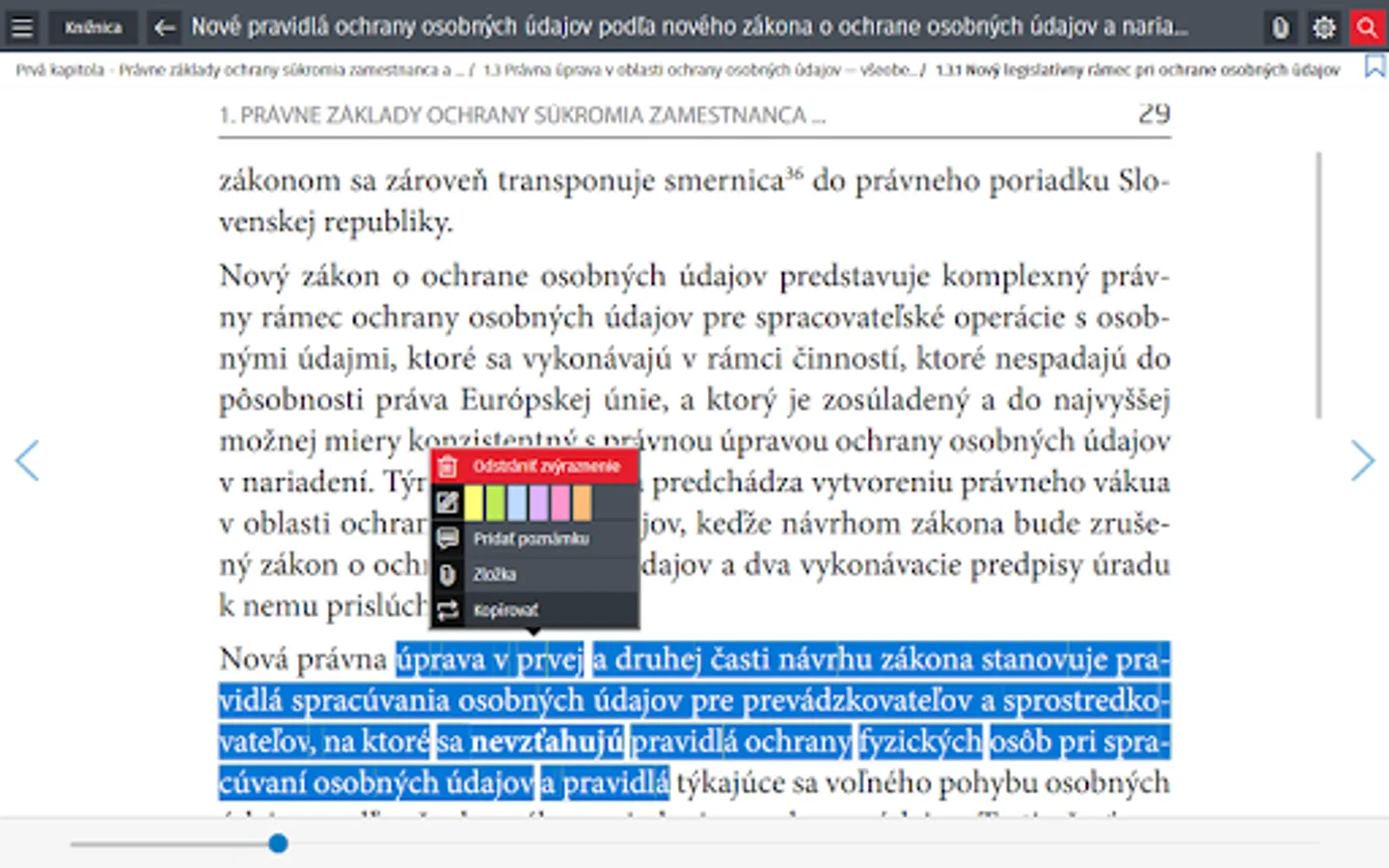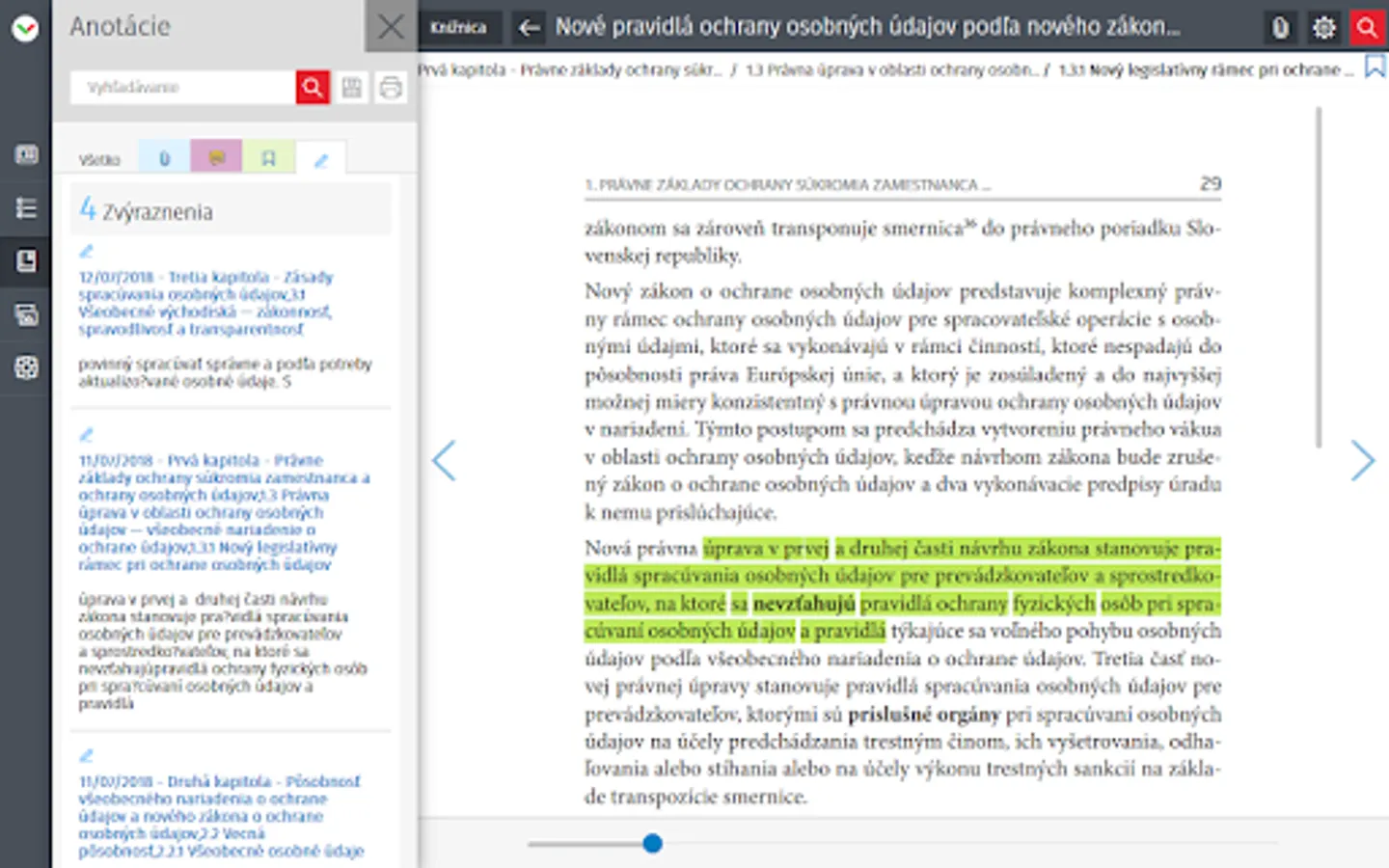 The application is primarily intended for reading literature Publisher Wolters Kluwer offers elaborate footnotes. You can highlight text in color and paste your own notes to it. Your comments will be used to sync between devices. Full text search works not only in the publications, but above all your digital knižnicoou.