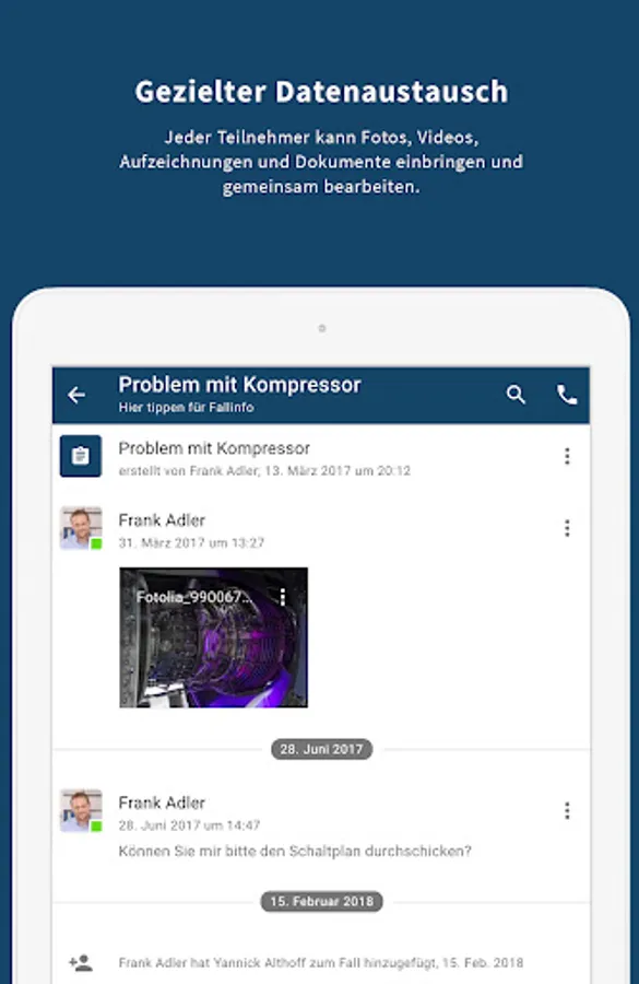 WKV customers and WKV experts can draw directly on real objects and label them during video calls. If your mobile or internet connection is poor, simply take a screenshot or photo, label it and send it to the expert as soon as you get signal again. Screen content can be shared for additional support.