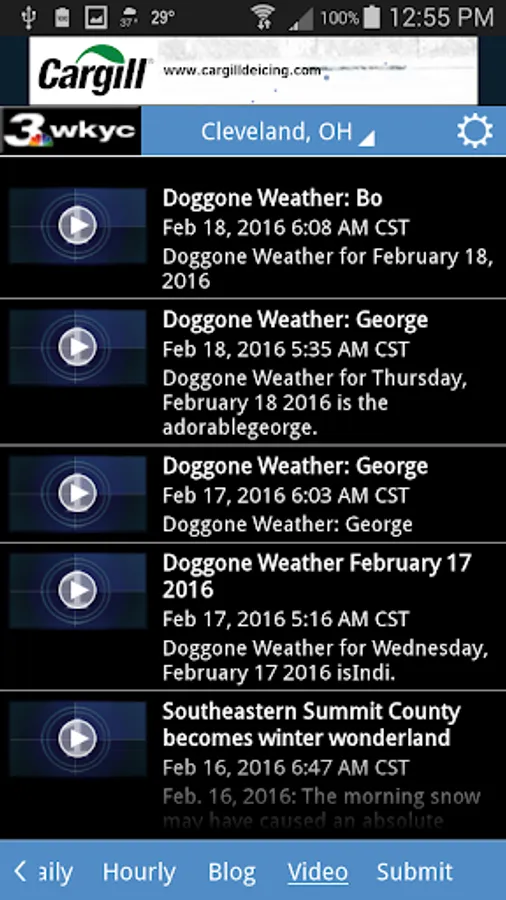 Get the latest northeast Ohio conditions for Cleveland, Akron/Canton and all Greater Cleveland -- including live interactive HD radar, current weather conditions, instant severe weather text alerts from WKYC and the extended Cleveland area forecast from the Channel 3 Weather team of Betsy Kling, Hollie Giangreco, Greg Dee and Michael Estime.