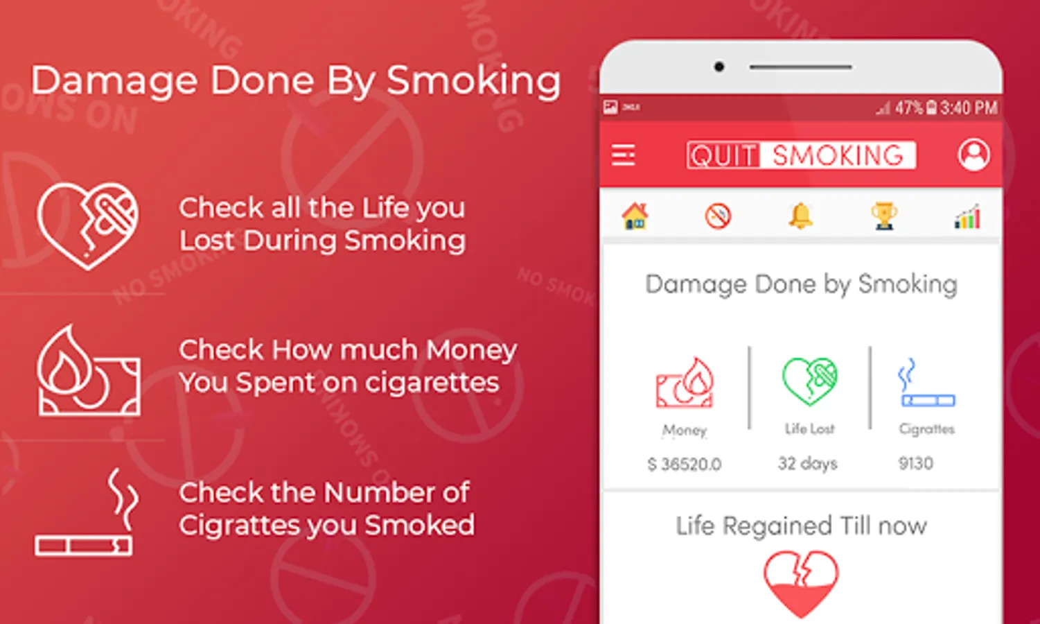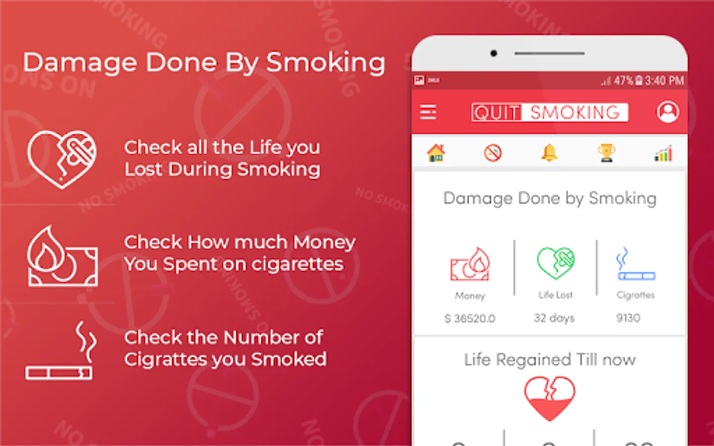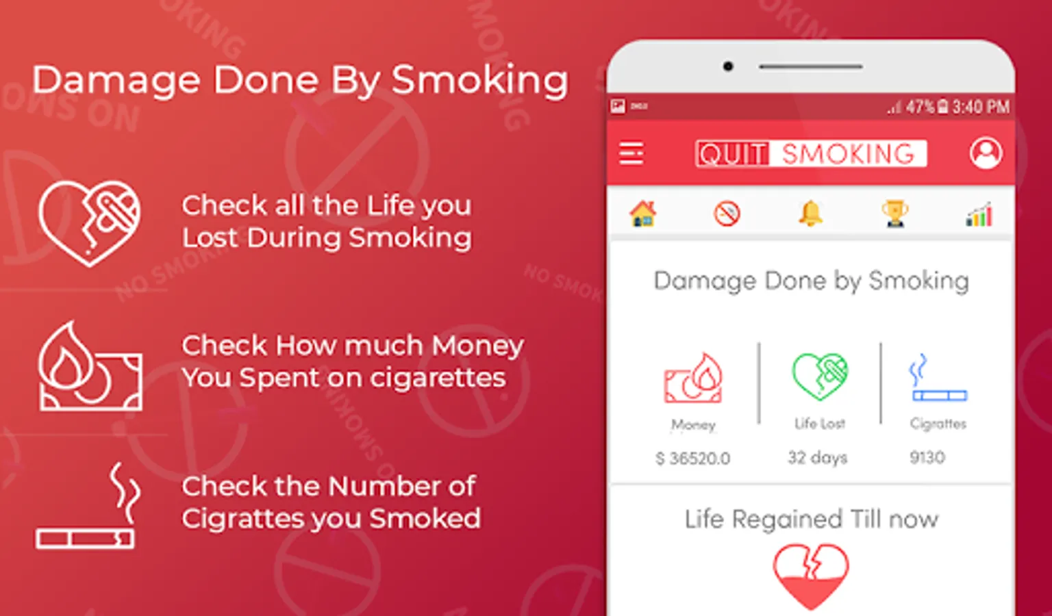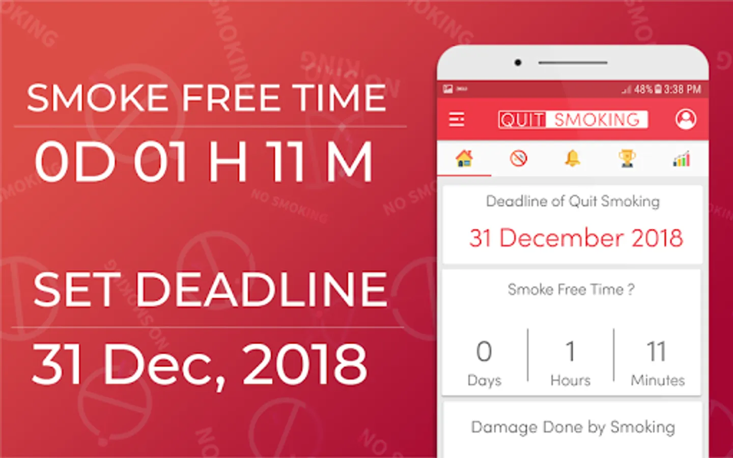 Want to quit smoking and live long? To get motivated, you need a powerful or personal reason to quit smoking and live strong. Quit smoking can lower your chance of getting lung cancer or any heart disease . You can be smoke free slowly by using our Smoke free: Stop, Quit, No smoking - Quit Tracker app and keep the track of your health and the money you save.