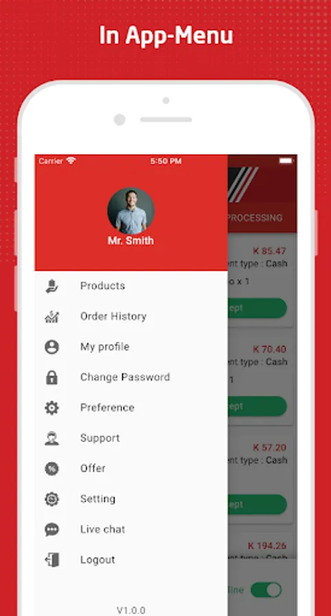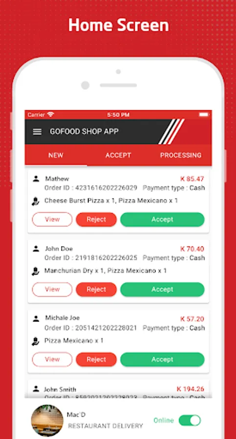 - Manage new order requests with a single tap - accept/reject